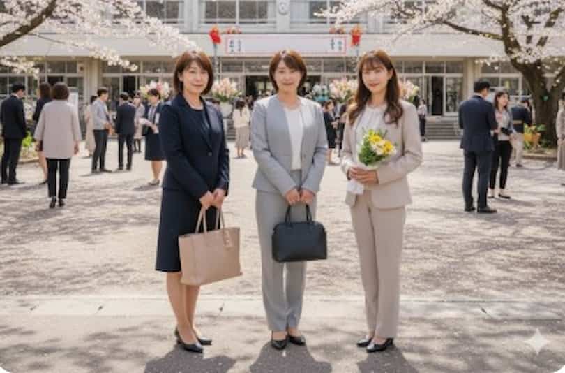 この記事では入学式で浮いて見えないママのスーツ選びにおけるポイントや、パンツ・スカートの違い、さらには卒園式との違いや共通点をわかりやすく解説します。